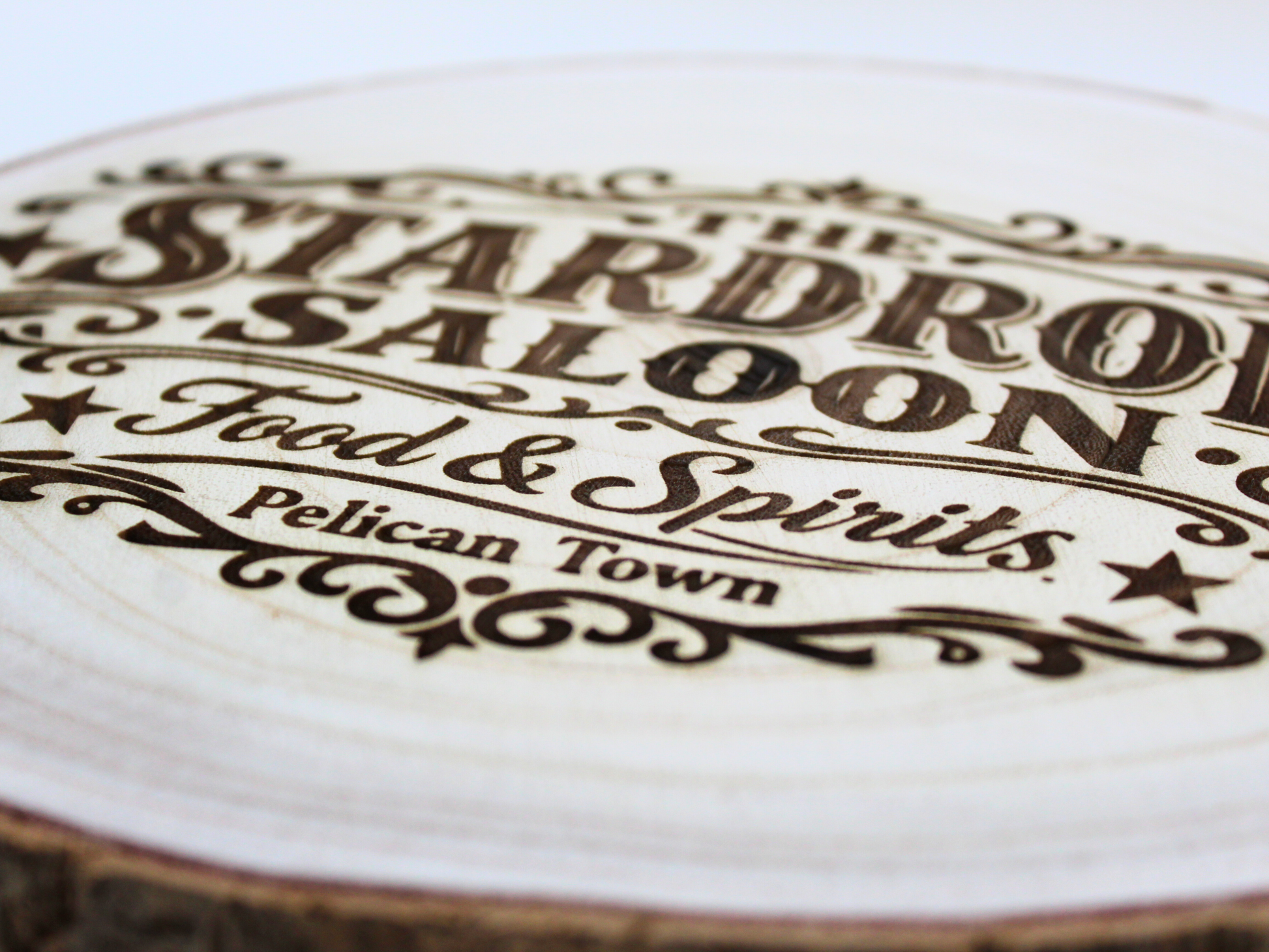 Handcrafted 9–10" laser-engraved wood plaque inspired by Stardew Valley’s Stardrop Saloon in Pelican Town. Rustic gaming decor perfect for fans, game rooms, and cozy spaces.